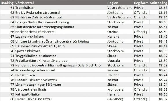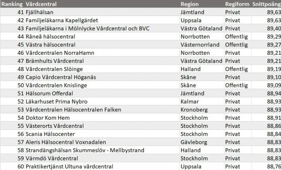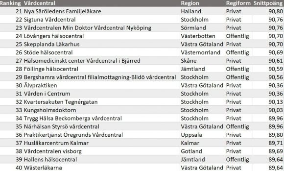 - 8 av de 20 mest uppskattade vårdcentralerna i Västernorrland är privat drivna.