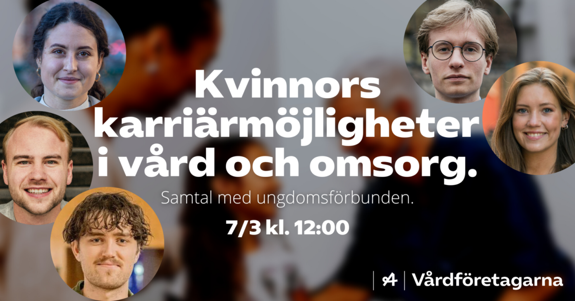 Vårdföretagarna bjuder in till lunchseminarium: Kvinnors karriärmöjligheter i vård och omsorg – samtal med ungdomsförbunden.
