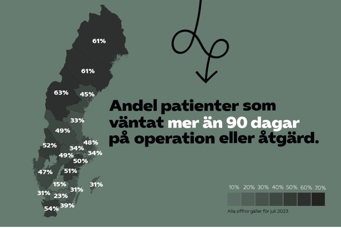 – I juli handlar det i riket om 3 200 kvinnor som väntat på ett gynekologiskt ingrepp i mer än 90 dagar. 9 800 personer som väntat på en ögonoperation. Så varken borde eller behöver det se ut. Vårdföretagarna anser att ingen ska behöva vänta på vård – den som bedöms behöva operera till exempel ett framfall borde kunna erbjudas det inom 30 dagar. Om kapaciteten hos fler utförare nyttjades så skulle fler få bra vård och utan orimlig väntan, säger Karin Elinder, expert sjukvård.