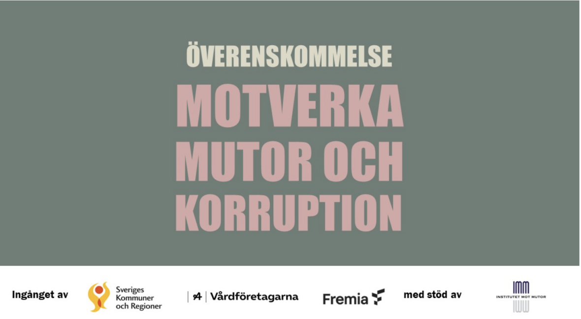 Sveriges Kommuner och Regioner, Vårdföretagarna och Fremia har med stöd av IMM tagit fram en överenskommelse för att motverka mutor och korruption inom vård, omsorg och personlig assistans. Överenskommelsen skapar en ram inom vilken aktörer kan agera och mötas i enlighet med lagar och undvika att hamna i situationer där osäkerhet om vad som är tillåtet uppstår. Genom överenskommelsen har respektive part åtagit sig att sprida kunskap om och verka för att aktörer i sektorn tillämpar den.
