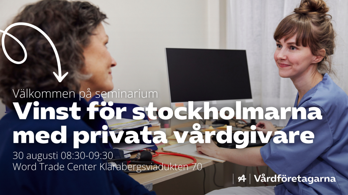 Varmt välkommen till frukostseminariet ”Vinst för stockholmarna med privata vårdgivare” fredagen 30 augusti 08:30-09:30 på World Trade Center i Stockholm.