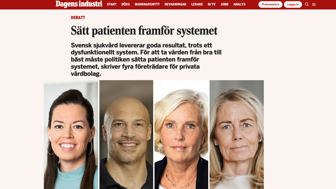 Debattartikel i Dagens Industri: Sätt patienten framför systemet