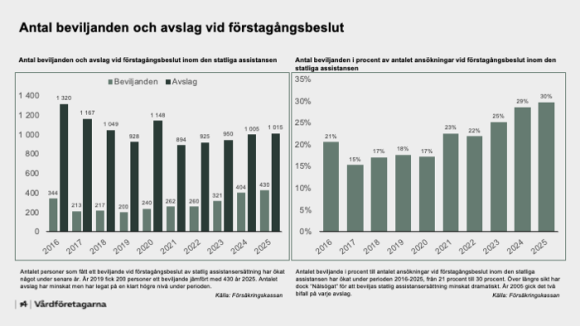 Under 2025 skedde ett trendbrott i antalet personer med statlig assistansersättning. För första året sedan 2013 ökar antalet personer med statlig assistans. Ökningen skedde dock nästan enbart i gruppen under 20 år. De över 20 år fortsatte att minska i antal fram till årets sista månader.