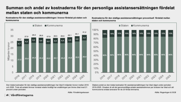 Den totala kostnaden för den statliga assistansen steg med en dryg miljard kronor under 2025.