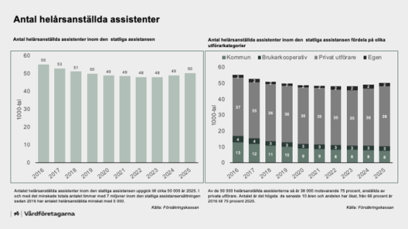 Vårdföretagarna vill bidra till att de som ska ha rätt till personlig assistans ska få det och att de som utför den ska ha rätt förutsättningar för att kunna göra detta på ett bra sätt. Som en del i detta vill vi därför sammanställa viktiga fakta och statistik kring det som rör personlig assistans i vad vi valt att kalla Assistansbarometern.
