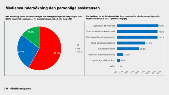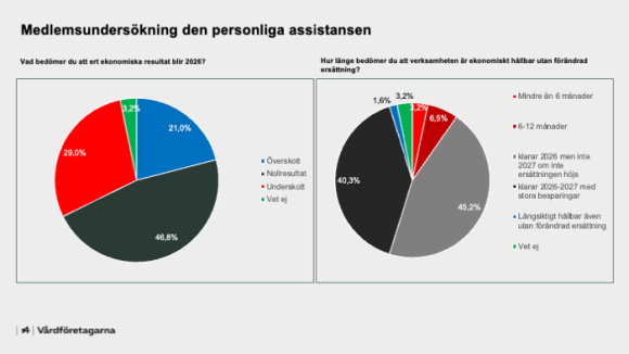 Under februari genomförde Vårdföretagarna en medlemsundersökning riktad till medlemmarna verksamma inom personlig assistans. Frågorna rörde företagens ekonomiska situation och föranleddes av de många år som ersättningarna till den personliga assistansen understigit kostnadsutvecklingen.