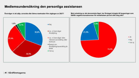 Den ekonomiska situationen för utförare inom personlig assistans är mycket pressad. Nästan två av tre företag överväger att sälja eller avveckla sin verksamhet under de närmaste åren. Det visar en ny medlemsundersökning från Vårdföretagarna som presenteras i Assistansbarometern.