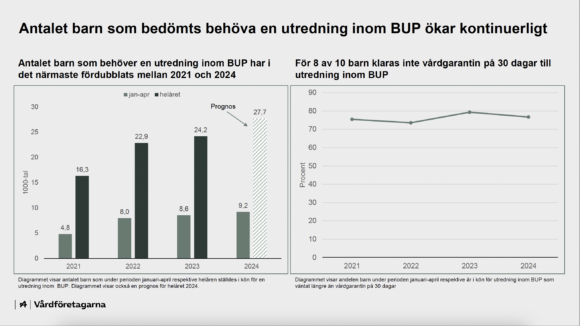 Vi prognostiserar att antalet barn ställs i kön för en utredning inom BUP kommer att vara närmare 28 000 för helåret 2024.
