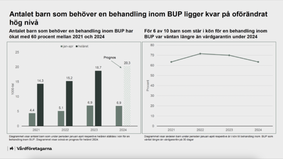 Vi prognostiserar att antalet barn ställs i kön för en behandling inom BUP kommer att vara drygt 20 000 för helåret 2024