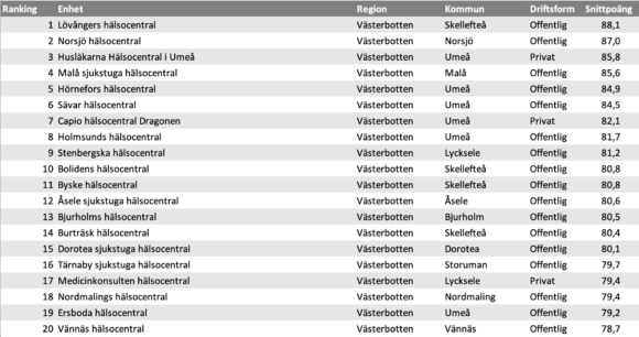 - Den mest uppskattade vårdcentralen i Västerbotten är offentligt driven.