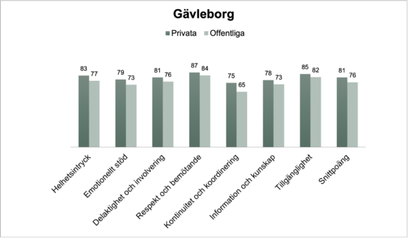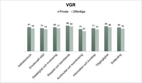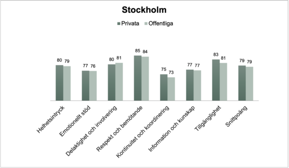 - De privat drivna vårdcentralerna har i snitt något högre patientnöjdhet på samtliga kvalitetsparametrar än de offentligt drivna vårdcentralerna. Skillnaderna är små, men entydiga.