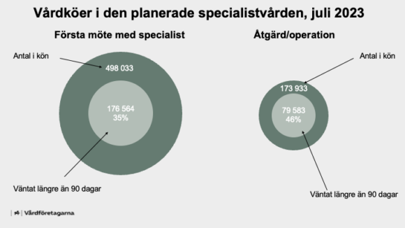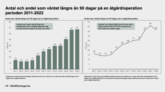 Sveriges långa vårdköer är det enskilt största problemet inom svensk hälso- och sjukvård. Samtidigt lade Sverige år 2021 cirka 11 % av BNP på just sjukvården och regionernas kostnaderna har ökat under de senaste åren.